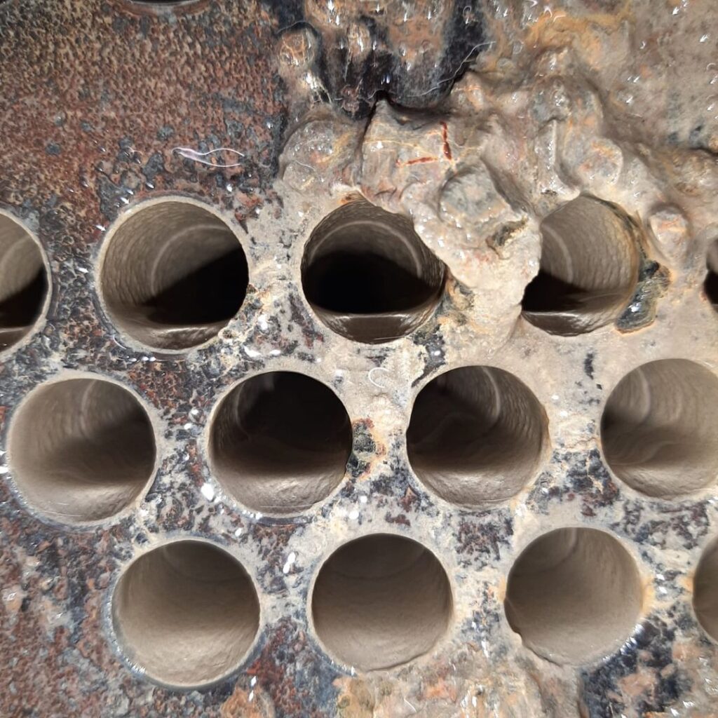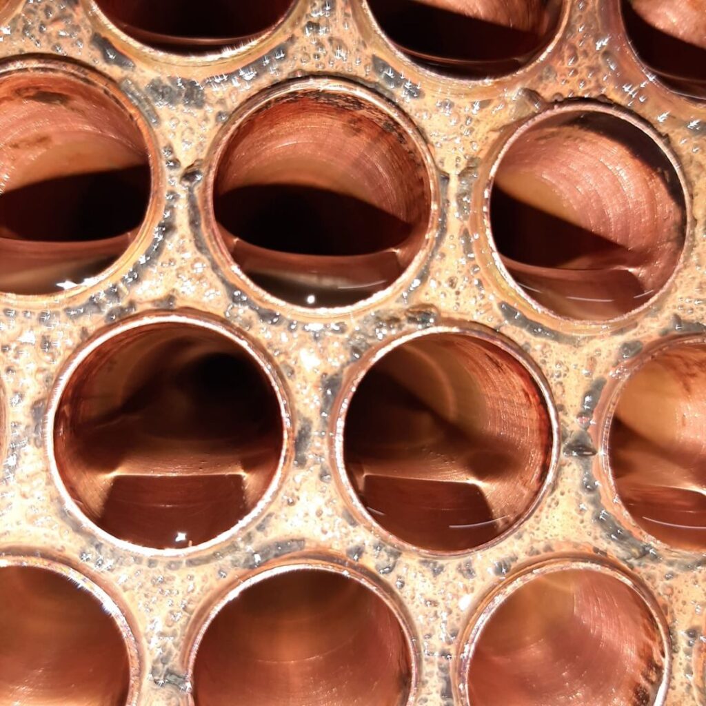 Normalmente, após 90 dias de tratamento já é possível se observar os avanços obtidos no controle e remoção gradativa de incrustações presentes em sistemas de troca térmica, como caldeiras e condensadores.